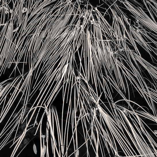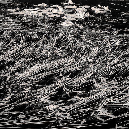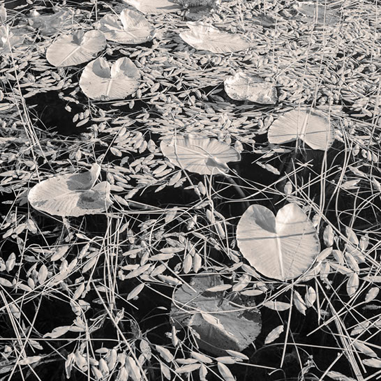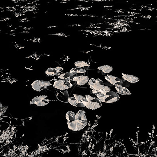 Centennial Lake. What could be more idyllic that the bucolic lily pad. This is a difficult subject to present without making it sentimental. But, it is a wonderful subject to work with in infrared. This technique helped render the plants floating on top of the water in stark contrast to the water. It's a study of infinite depth of space and 2D arrangement. The photographic technique simplified the frame by helping reduce the reflection on the water and give the subject a clean, uncluttered slate to rest on. The simple beauty of line and form are paramount.