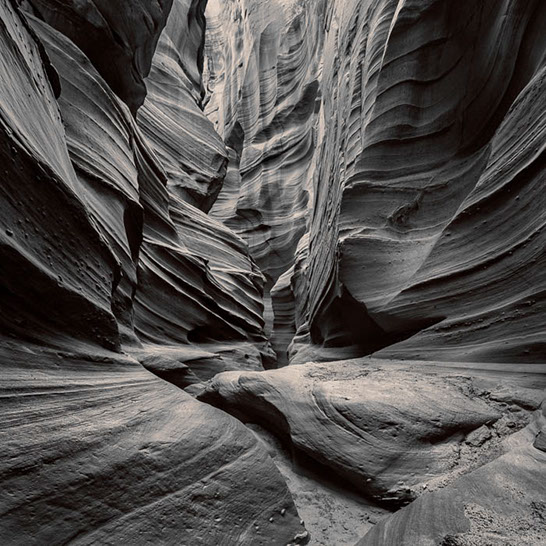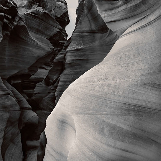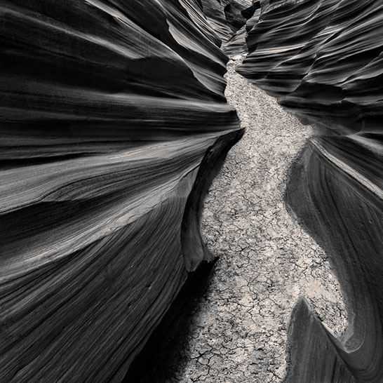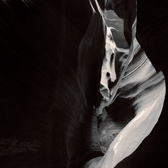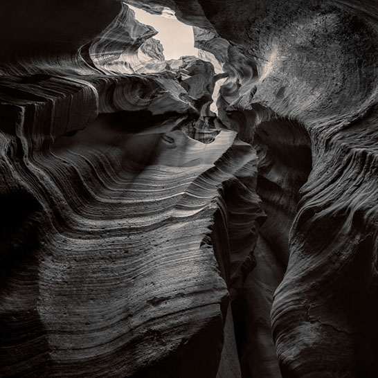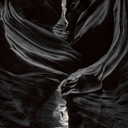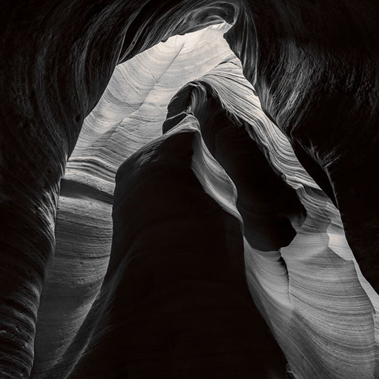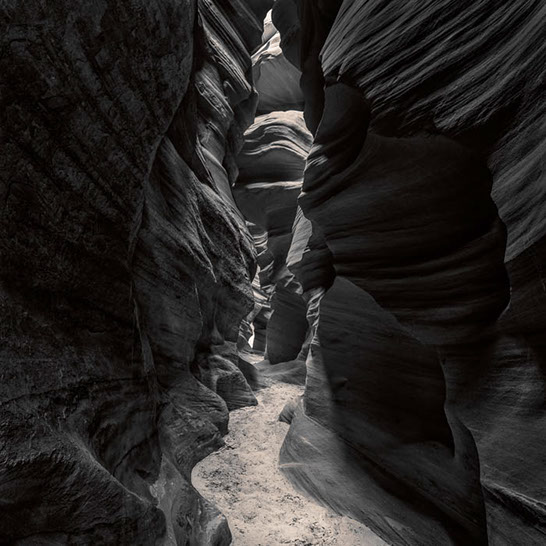 Dante's Inferno. While working the formations of lower Antelope Canyon, I marveled at the demonic shapes and underworld vibe I felt traveling through them. These structures reminded me of Dante's epic poem, The Inferno. Although not a literal translation of word to image, the uncanny patterns reminded me of Dante's journey through the underworld and back out again. Upon returning home, I started researching Navajo creation stories and their traditional views of the "other" world.