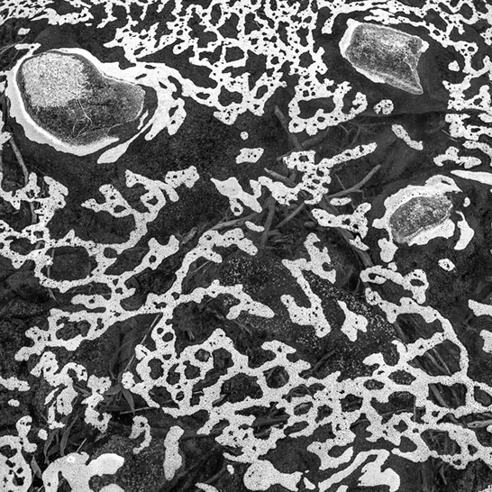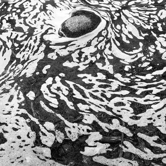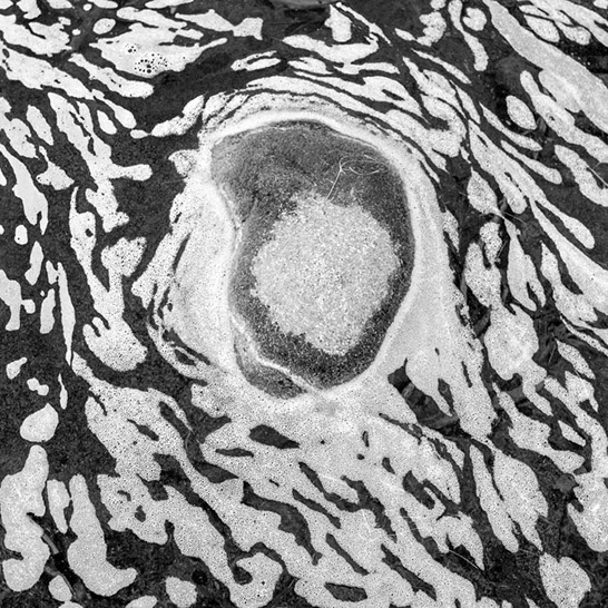 Pond Foam. The froth of decay. I have spent most of my career looking for interesting patterns in nature and in the man-made environment. This is probably my strangest fixation. It started out on the tundra of interior Alaska in the Tangle Lakes area. A combination of wind and heavy rains were a part of this serendipitous find. Since then I have run across wonderful swirls and reticulated patterns on several lakes and streams. When in a current, the patterns deform and twirl into almost psychedelic shapes.
