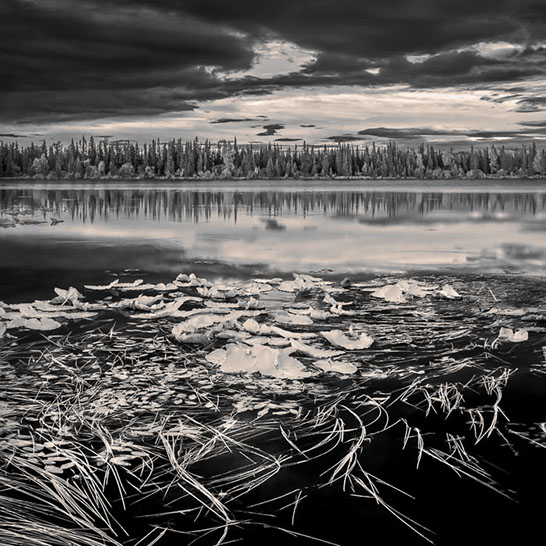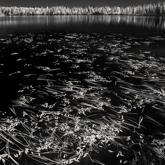 Centennial Lake. What could be more idyllic that the bucolic lily pad. This is a difficult subject to present without making it sentimental. But, it is a wonderful subject to work with in infrared. This technique helped render the plants floating on top of the water in stark contrast to the water. It's a study of infinite depth of space and 2D arrangement. The photographic technique simplified the frame by helping reduce the reflection on the water and give the subject a clean, uncluttered slate to rest on. The simple beauty of line and form are paramount.