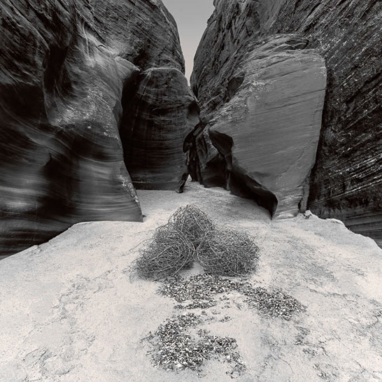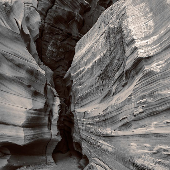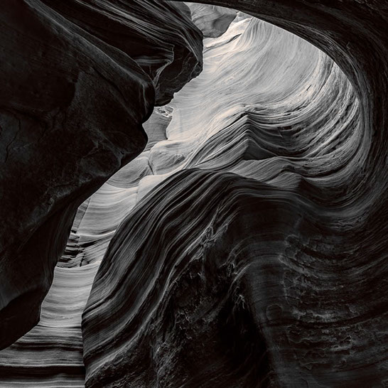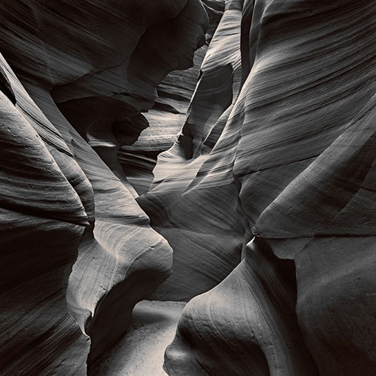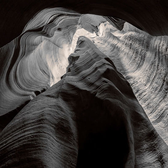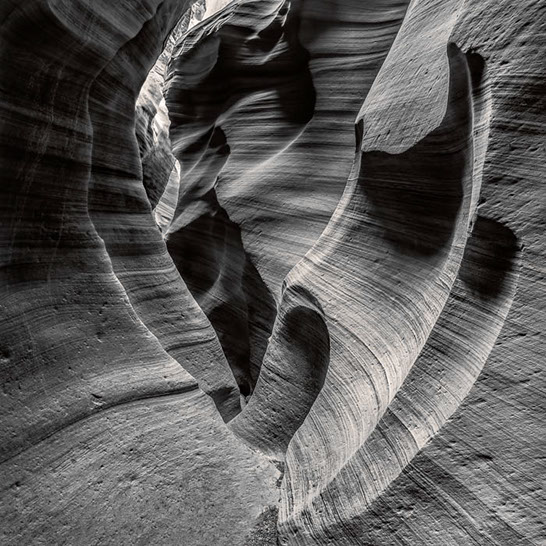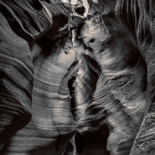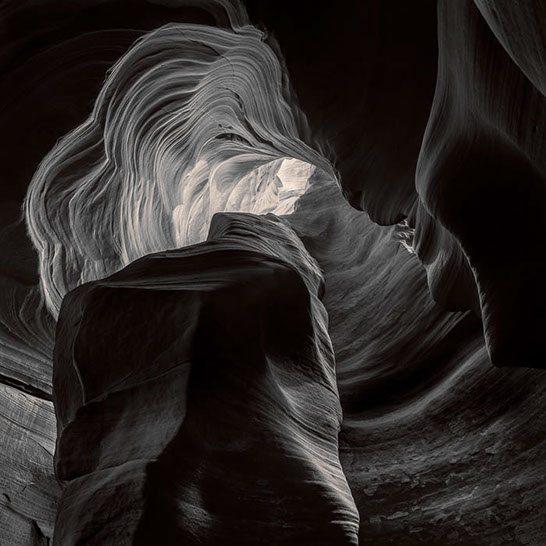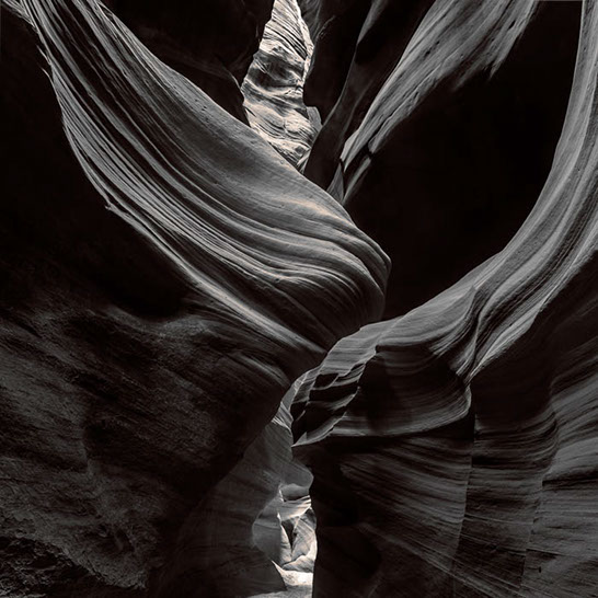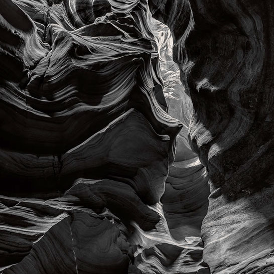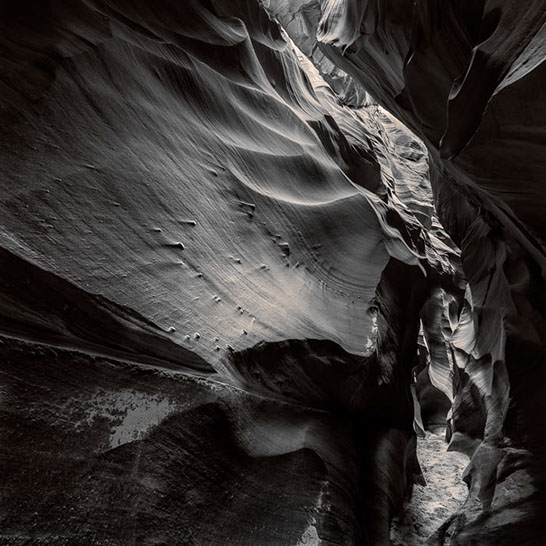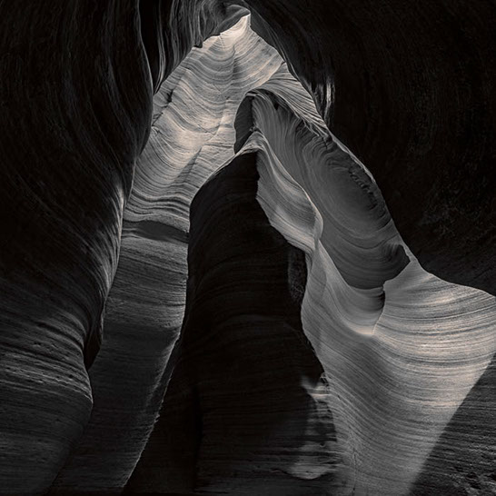 Dante's Inferno. While working the formations of lower Antelope Canyon, I marveled at the demonic shapes and underworld vibe I felt traveling through them. These structures reminded me of Dante's epic poem, The Inferno. Although not a literal translation of word to image, the uncanny patterns reminded me of Dante's journey through the underworld and back out again. Upon returning home, I started researching Navajo creation stories and their traditional views of the "other" world.